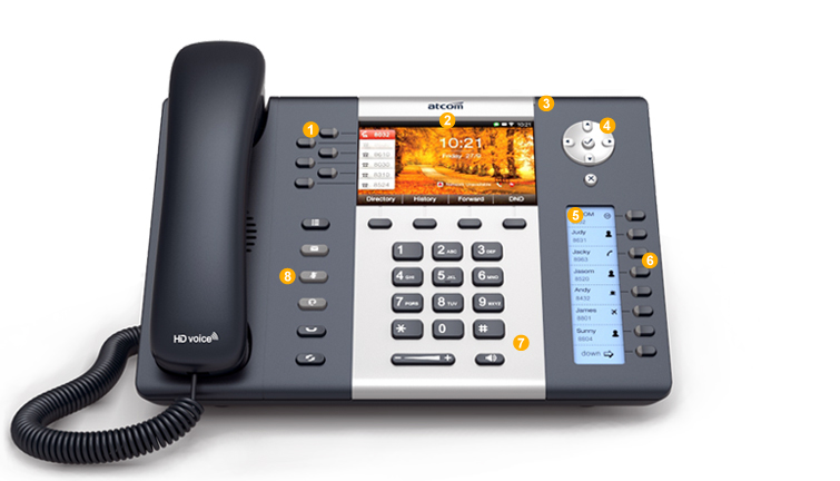 A68以“极致工作效率、华丽音质体验、可视化操作、精美细节”为设计理念,是专门为管理人员和专业人士打造的一款管理级高端商务电话。它拥有4.3吋TFT彩屏,可翻页副屏集成个多功能按键,支持双千兆网口、PoE供电、EHS无线耳机接口、拨号拓展模块接口。其华丽的大功率免提音质、九方会议、更高级别的ZRTP加密方式”的特性在管理级电话里更是优势突出。