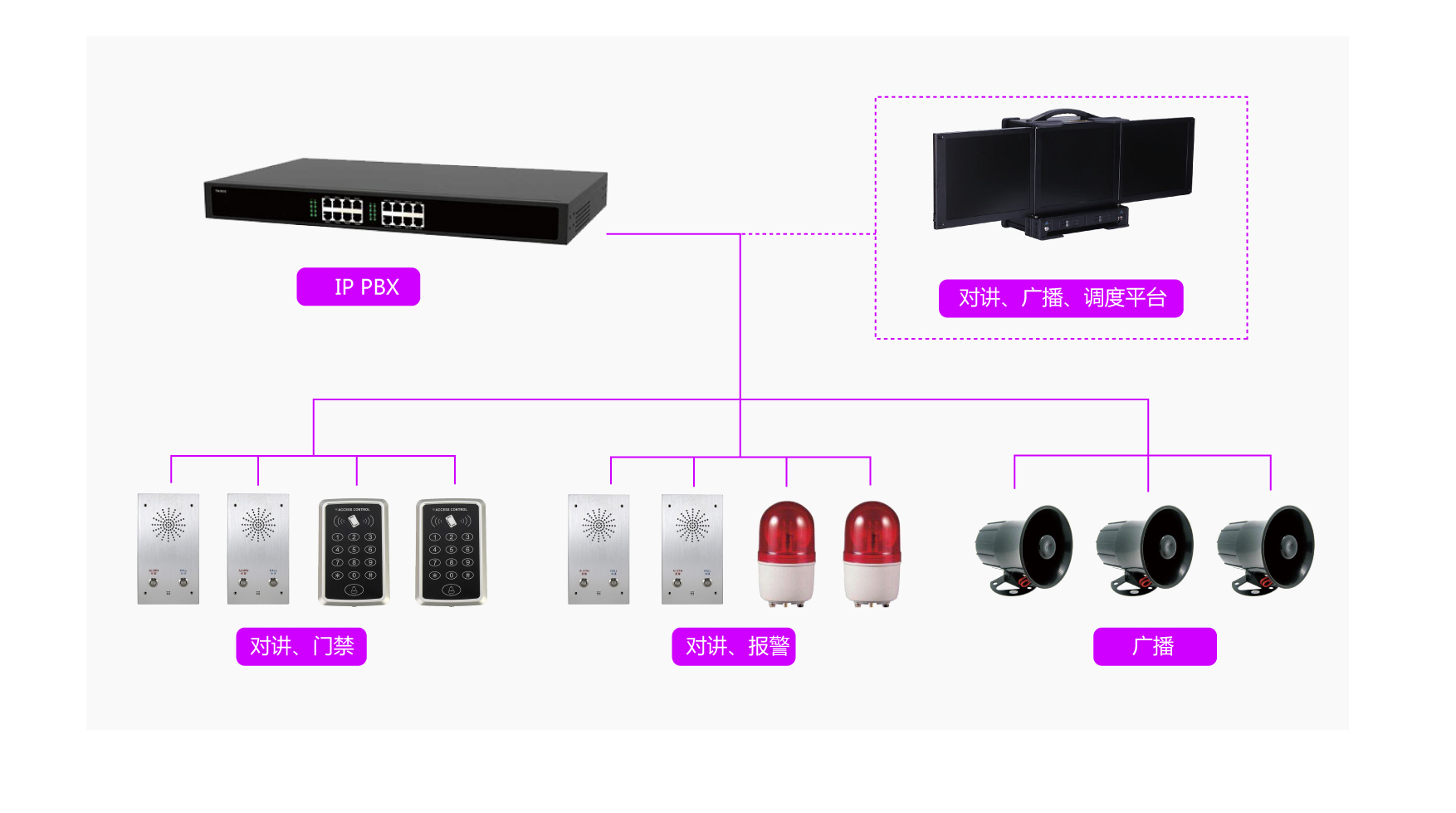 对讲IP解决方案是指使用IP对讲终端配合IP对讲系统或者使用IP对讲终端自组网的语音交换解决对讲需求的IP解决方案,相对于传统对讲方案,IP对讲方案在“语音交换、音质、部署、管理、安全、 可扩展性”存在明显优势,对讲已经成为另外一个迅速IP化的领域。ATCOM的IP对讲系列产品为对讲提供了性能强大、音质出色的IP解决方案,而Wi-Fi对讲的应用解决了很多领域对讲无法布线的困境。