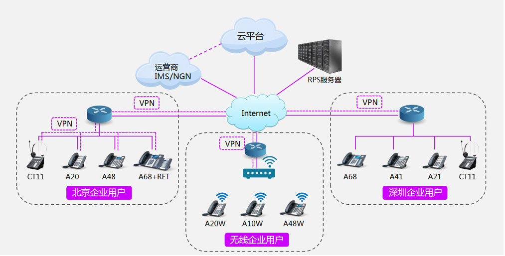 话机必须考虑用户网络环境,尤其是无法拉网线的用户。ATCOM话机提供了“千兆、百兆、Wi-Fi”三种网络接入方式的系列话机。ATCOM Wi-Fi系列话机,根据语音实时和Wi-Fi信道干扰的特性深度优化了SIP和Wi-Fi协议,在Wi-Fi信道受到干扰时大福提高语音传输的可靠性,满足了商务需求,解决了云部署中网络布线的痛点。ATCOM系列话机标配OPEN VPN功能,给云语音解决方案提供了安全可靠的连接通道。